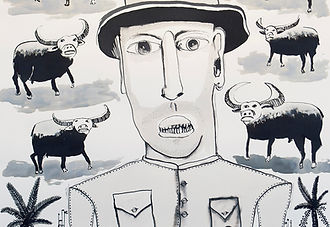 This was the first major survey of more than a decade of Mellor's work. Inspired by his Indigenous heritage, Mellor toys with Australia's shared and contested histories, by layering British imagery with scenes from traditional Indigenous culture in Australia.